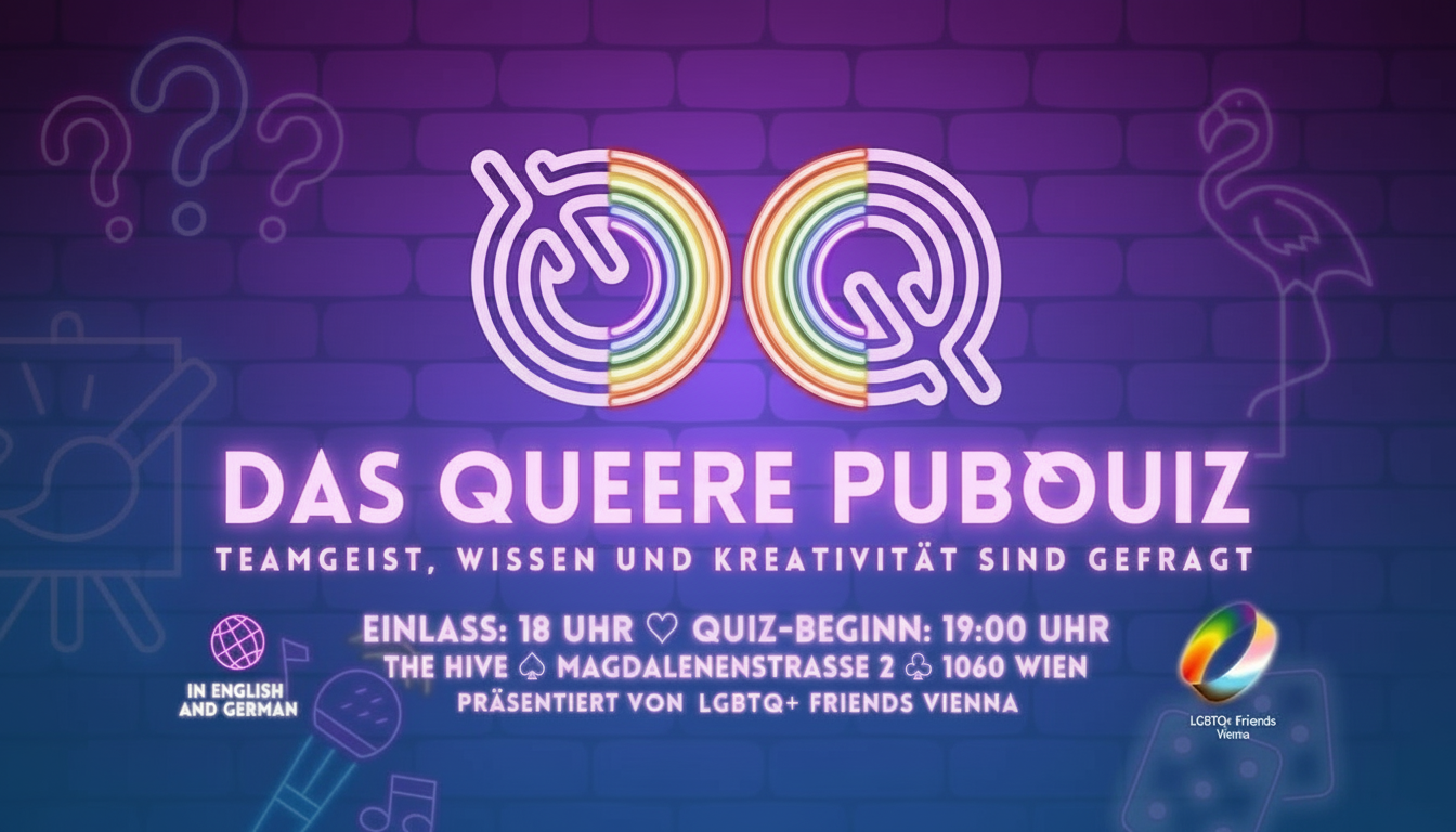Bist du bereit für einen Abend voller Wissen, Spaß und Spannung? Bei QXQ - das queere Pubquiz zählt nicht nur Köpfchen, sondern auch Teamgeist und eine gute Portion Kreativität. Gespielt wird in Teams mit bis zu 4 Personen. Erwartet interessante Fragen, lustige Aufgaben, überraschende Joker und eine Finalrunde, die es in sich hat. Das Quiz ist sowohl für Internationals als auch für Einheimische geeignet, da wir bei der Auswahl der Fragen darauf achten werden, dass sie auf Englisch als auch auf Deutsch gut verständlich ist. Gemischte Teams aus Internationals und Locals haben aber einen Vorteil. Wie kannst du mitmachen? Teams: Melde dich auf Meetup mit bis zu drei weiteren Freund*innen, wenn du ein fixes Team bilden möchtest. mit anderen zusammenspielen: Melde dich auf Meetup an. Für alle, die sich alleine anmelden werden wir vor Ort dann die Teams zusammenstellen.