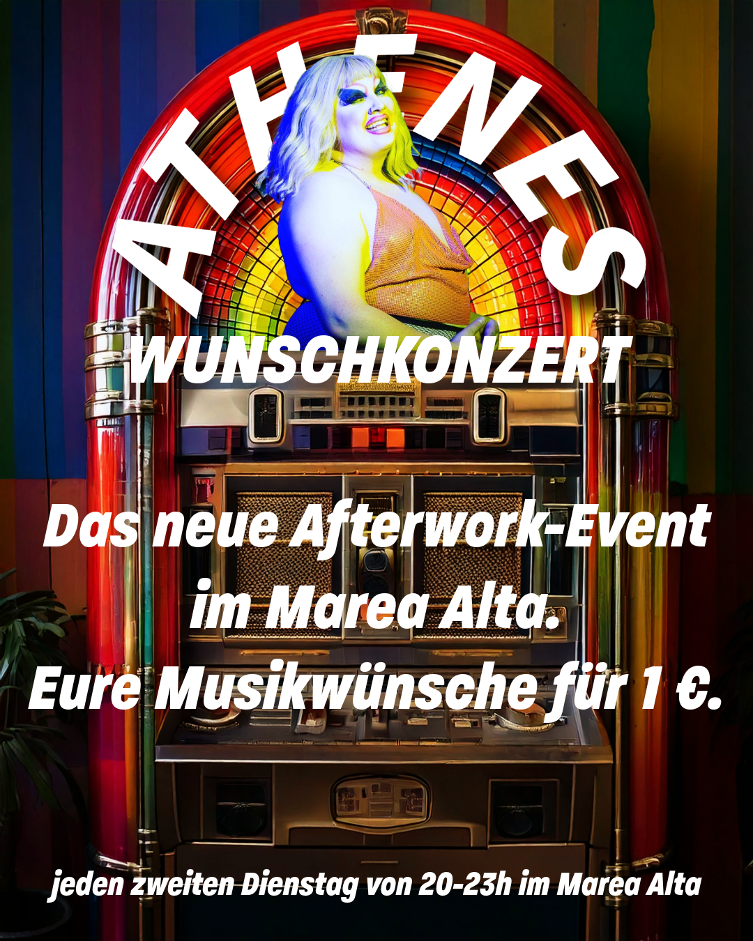 Athene erfüllt wieder eure Musikwünsche für einen Euro! Wie gewohnt senden wir von 20-23h außerdem LIVE aus dem queeren Wohnzimmer der Nation hinein in die Tiefen des World Wide Web. Link: https://atheneatlas.at/stream