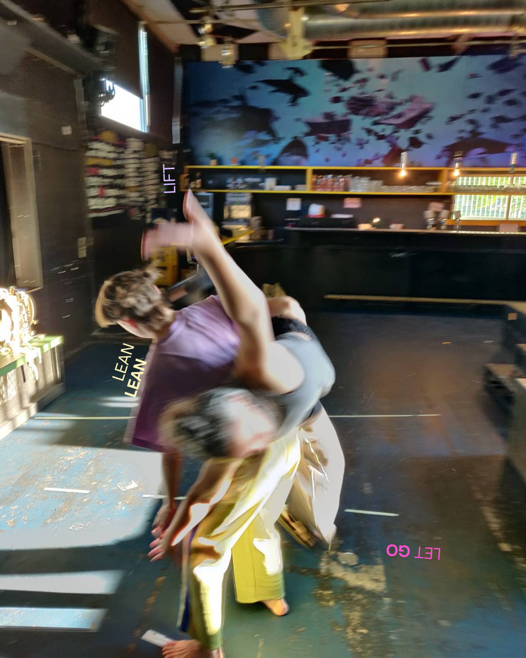 We lean into contact and improvisation—lifting ourselves, lifting each other, tossing out the old rulebook of what dance should be. We shake off the forces that hold us back. This space is for beginners, the curious, and anyone who wants to explore fresh, playful ways into connection, dance, and Contact Improvisation. We'll play with how we enter, exit, and slip back into contact. We'll track our personal space like curious explorers—feeling into boundaries, needs, sparks of “ooh, what’s that?” in connection with others. We’ll practice speaking up, acting out (in the best way), saying no (and YES!), honoring consent, and opening the floodgates to optionsoptionsoptions—in solo, in duets, in fluid constellations of moving bodies. We explore body and space. We improvise with forces. We fall, lean on each other, share, and play. We dance.