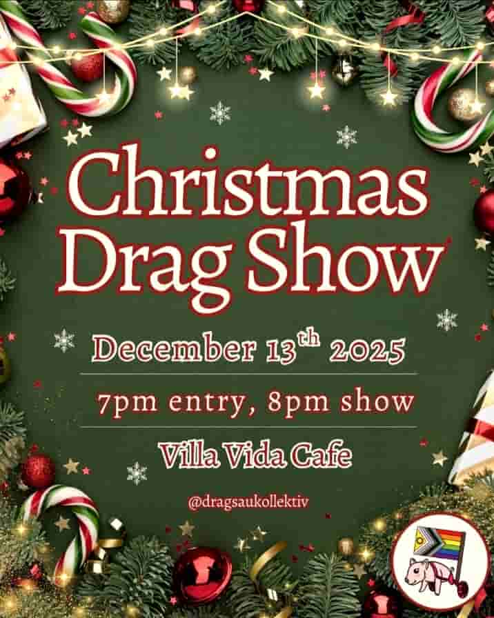 All we want for Christmas...is accessible drag shows & queer spaces (& for you to come to our Christmas show!) 🎄 This December, we'll ask the Christkind for accessibility aids and disabled representation - at our first Christmas/Winter-themed show. So bring your festive spirit if you want to, get some hot cocoa at the bar and watch our hot lineup melt the frost outside. Of course, if you don't celebrate Christmas, we'd love for you to come anyway - don't worry, the only mythical legends in costumes that we celebrate will be our performers. Where? Villa Vida Café, Linke Wienzeile 102 When? Saturday, 13.12. 7pm (entry). 8pm. (show) How much? donation based, 8-15€ recommended (bring cash to tip your performers too!) IMPORTANT: Due to accessibility issues arising at our Halloween show due to the sheer number of people in the audience (thank you again <3), this show will function with online reservation for a guaranteed entry. More info coming soon! Lineup and accessibility infos are coming soon!