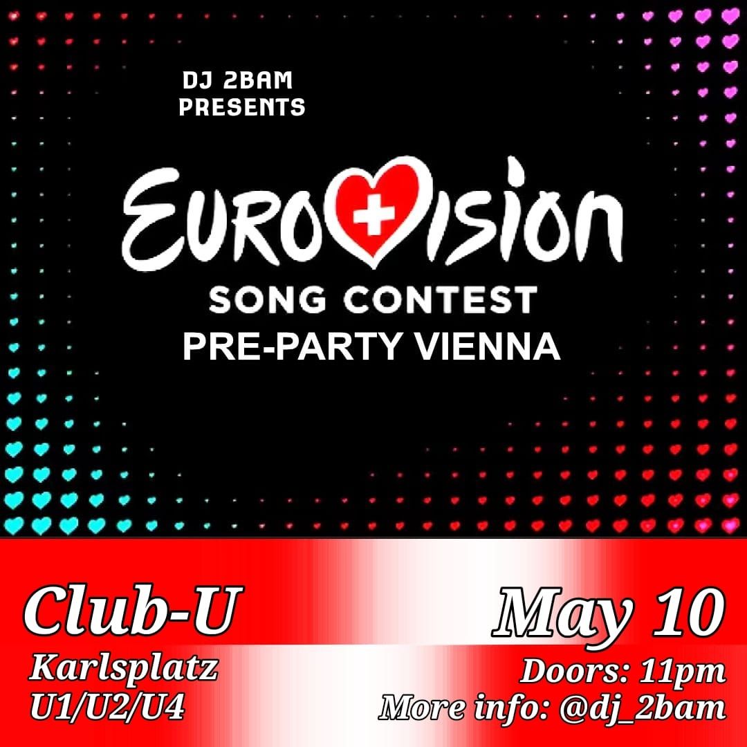 DJ 2BAM PRESENTS: EUROVISION 2025 PRE-PARTY VIENNA May 10th, Doors: 11pm Club-U Karlsplatz U1/U2/U4 Line-Up: DJ 2BAM @dj_2bam SOUND: 80% EUROVISION PARTY MUSIC 20% Pop & K-Pop 8€ Entry fee -> tickets are available at the entrance -> you'll get a 3€ drinks coupon for the bar -> this event is supervised by security !! 16+