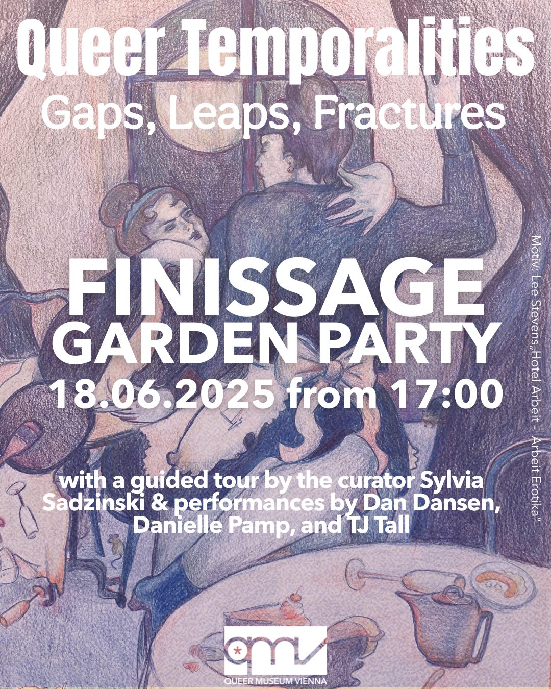 Das QUEER MUSEUM verabschiedet sich mit einem zauberhaften Abend in die Sommerpause Ein kostenloses Angebot fĂŒr Alle im Rahmen der Ausstellung âBrĂŒche, LĂŒcken, SprĂŒnge â Queere Zeitlichkeitenâ Mi 18.06.2025, ab 17:00 Uhr, QUEER MUSEUM VIENNA Otto Wagner Areal, C-GebĂ€ude (ehem. Direktion), Stiege 2, Hochparterre, Baumgartner Höhe 1, 1140 Wien Programm: ab 17Uhr geöffnet (Sowohl Garten als auch Ausstelllung) 18Uhr Dan Dansen Performance (indoor) 19Uhr Kurator*innen FĂŒhrung durch die Austellung (indoor) ab 20Uhr Musikalische Performance Danielle Pamp & TJ TALL (outdoor) wĂ€hrend der ganzen Zeit, Cocktails und Drinks im Garten GenieĂt mit uns gemeinsam einen lauen Abend im Museum und im Garten davor. Das QUEER MUSEUM VIENNA verabschiedet sich mit einem fulminanten Abend mit viel Programm in die Sommerpause. Wir begehen das Ende der Ausstellung âBrĂŒche, LĂŒcken, SprĂŒnge â Queere Zeitlichkeitenâ. Feiert mit uns und feiert euch! Wir heiĂen alle herzlich willkommen! Zusammen sind wir viele, zusammen sind wir mehr! Dan Dansen: ââAn meine Ahn*innen. Trans*-Formationen in Raum und Zeitâ begibt sich auf die Suche nach Trans*-Ahnenschaft im frĂŒhen Europa. Wie hat Trans*-Leben vor dem Zeitalter der AufklĂ€rung ausgesehen? Die Performance erschafft ein Ritual zur Anrufung der verlorenen Trans*-Ahn*innen Europas und kombiniert Pflanzen, Video-Installation und Performance zu einer immersiven ErzĂ€hlung!â Danielle Pamp dreht mit Liedern zwischen Variete, Operette und den Schlagern der 30er-Jahre die Zeit zurĂŒck. Mit wunderschöner Melancholie und Stolz beschwört ihr Gesang eine lĂ€ngst vergangene Ăra, reprĂ€sentiert IdentitĂ€ten und Persönlichkeiten, deren Existenz und Biografien allzu oft in Vergessenheit geraten sind. Ăber historische Referenzen entfalten sich queere ErzĂ€hlungen und mit ihnen eine neue Geschichtsschreibung und Sichtbarkeit. Eine Performance so bezaubernd wie existenziell. TJ Tall (er/they) macht Soca- und Dancehall-Musik, die sich ĂŒber Normen hinwegsetzt und die HĂŒften befreit - spirituell, sexuell, unapologetisch. Seine Musik ist gelebte Befreiung: Sie sprengen die Ketten der HeteronormativitĂ€t und der RespektabilitĂ€t und umarmen Liebe, Gemeinschaft und Freiheit. Wiens experimentelle Szene macht ihr Ding, TJ Tall macht seins. Introspektive Hymnen wie âMama Iâm Grownâ dienen als Manifest: âBetter let me live my truth / As I let you do the same.â FĂŒr die Schwulen, die Freaks und jeden, der jemals auf einem Riddim als âAbscheulichkeitâ bezeichnet wurde. Kein Verstecken. Keine Entschuldigungen. Just win(n)ing. Bis dann Schatzis!? Eintritt frei â Spenden willkommen