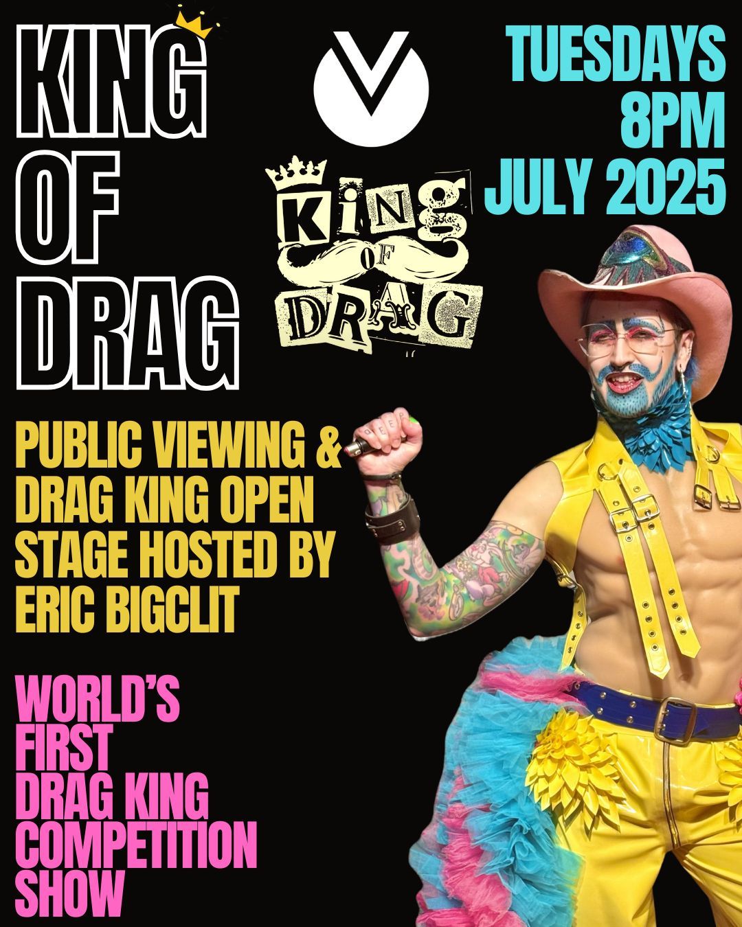 👑 Get ready to serve King energy! 👑 Join us every Tuesday at 8PM in July at Villa Vida for public viewings of King of Drag — the world’s first drag king competition show! 🎬 Hosted by the one and only Eric Bigclit, each screening is followed by an open stage spotlighting local drag kings bringing the house down! 💥 🎤 Open mic, open hearts, open gender expression.