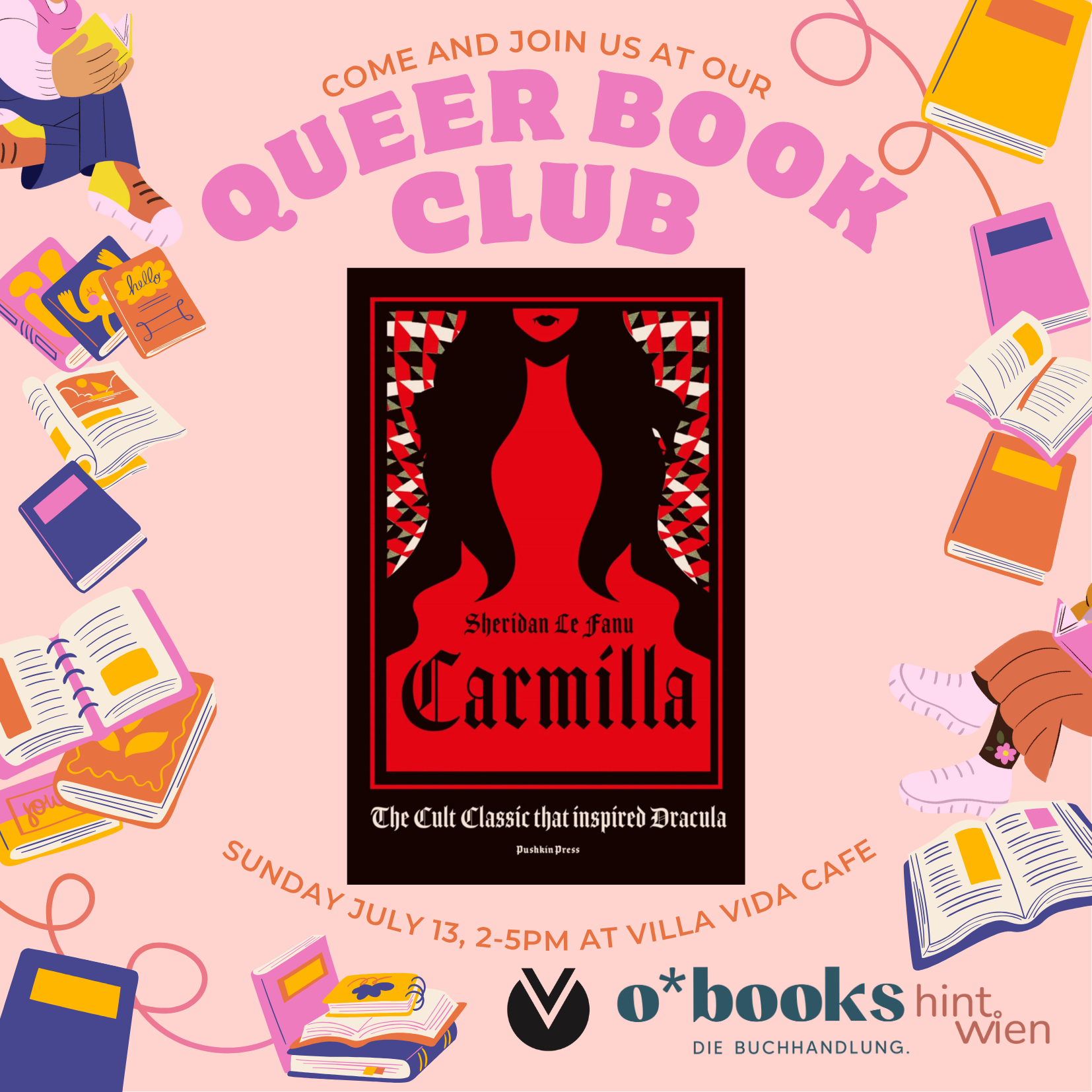 Join the Queer Book Club Vienna in July! Looking for a space to discuss queer literature and meet like-minded people? The Queer Book Club Vienna at Villa Vida Cafรฉ invites you to our July session featuring the cult classic Carmilla by Sheridan Le Fanu. This groundbreaking vampire novella, which inspired Dracula, offers plenty of fascinating queer subtext to explore together. On Sunday, July 13, 2025, from 14:00 to 17:00, join us for an engaging discussion about this Gothic tale of desire, identity, and fear. Whether youโre a longtime fan of queer literature or just starting out, this is a welcoming space for everyone interested in LGBTQ+ narratives. What to Expect at Queer Book Club Vienna โ July: Carmilla ๐ Engaging Discussion โ Dive into the queer themes, characters, and symbolism of Carmilla. ๐ณ๏ธโ๐ Inclusive & Safe Space โ Enjoy open, respectful conversations in a queer-centered environment. ๐ฆ A Gothic Classic Through a Queer Lens โ Share your interpretations and discover new perspectives. ๐ท Cozy Cafรฉ Atmosphere โ Sip drinks, enjoy snacks, and chat at Villa Vida Cafรฉ. Who Can Join? ๐ Open to all LGBTQ+ book lovers who want to discuss queer literature in good company.