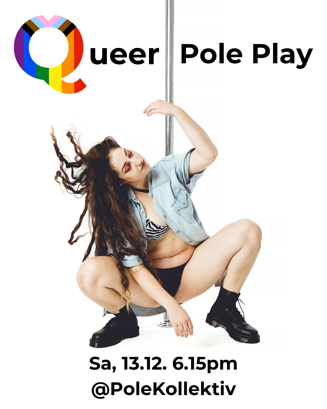 This workshop is for queer peeps who are new to pole, have a bit of experience, or enjoy exploring the foundations of pole dance. It is especially for those who haven’t attended a pole dance class due to financial barriers or fear of discrimination in pole spaces. There are no prerequisites! Michelle will facilitate 75 minutes of guided learning in a playful and exploratory approach. The rest of the time is for practicing more pole, socializing, or just hanging out. Be aware that two events are happening this evening! Each event has their own sign up. 18:15 - 20:15 Queer Pole Play 75min of guided learning + time to play more, mingle or just hang if wanted max. 7 spots 19:45 - 20:15 Transition Time ;) Arriving & warming up, cooling down & leaving; Getting to know other pole peeps. 19:45 - 21:15 Queer Open Pole 1,5h time for your own training max. 5 spots This workshop has a base price of € 14 and offers a PAY-AS-YOU-CAN option.