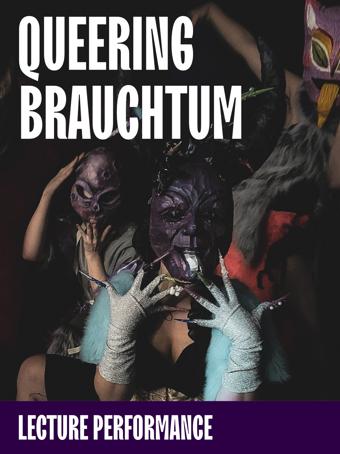 Brauchtum sagt es ja schon: Personen brauchen etwas, zu einer bestimmten Zeit. Und was wir brauchen, verändert sich. Brauchen wir wirklich noch dieses konservativ geprägte, binäre Denken im Brauchtum? Wie lässt sich die vermeintliche „Naturgegebenheit“ von Binarität und Macht im Brauchtum durchbrechen? Wie können wir Traditionen öffnen, neu zusammensetzen, anders beleben? Hannah Maria Wimmer teilt Einblicke und Ansätze aus ihrer künstlerisch-forschenden Praxis, in der Volkstanz und Handwerk mit queer-theoretischen Perspektiven verbunden werden. Das Kollektiv Krampussy begleitet den Abend. Fotocredits: Kollektiv Krampussy, photoby_Magda-Winding